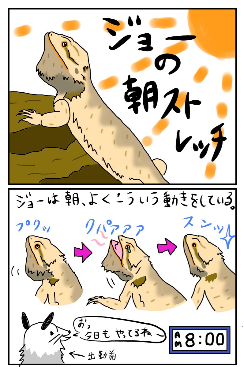 1 33 ①ジョーのストレッチ #フトアゴヒゲトカゲ #爬虫類 #デジタルイラスト #ペット漫画 22/03/12 11:34