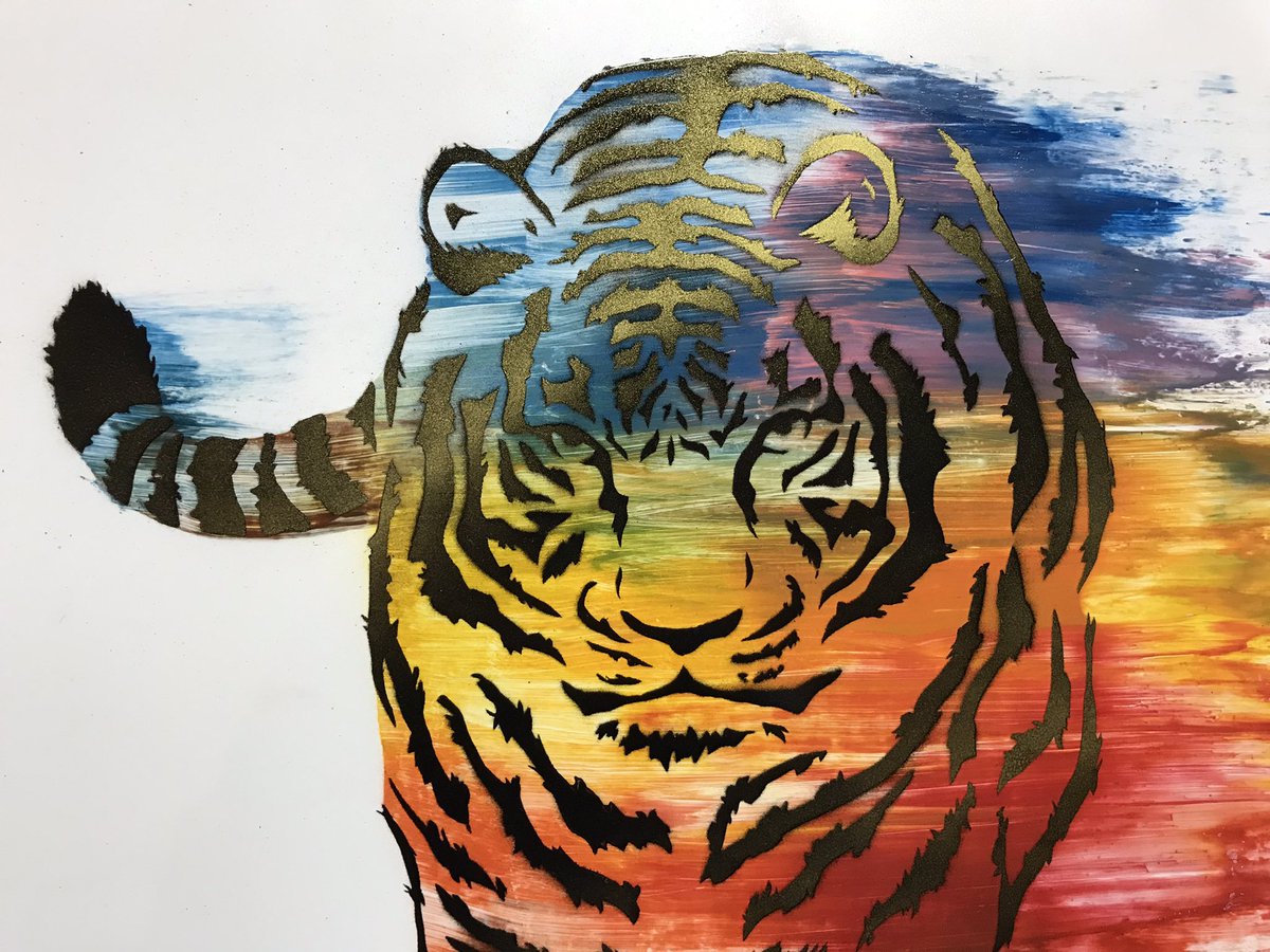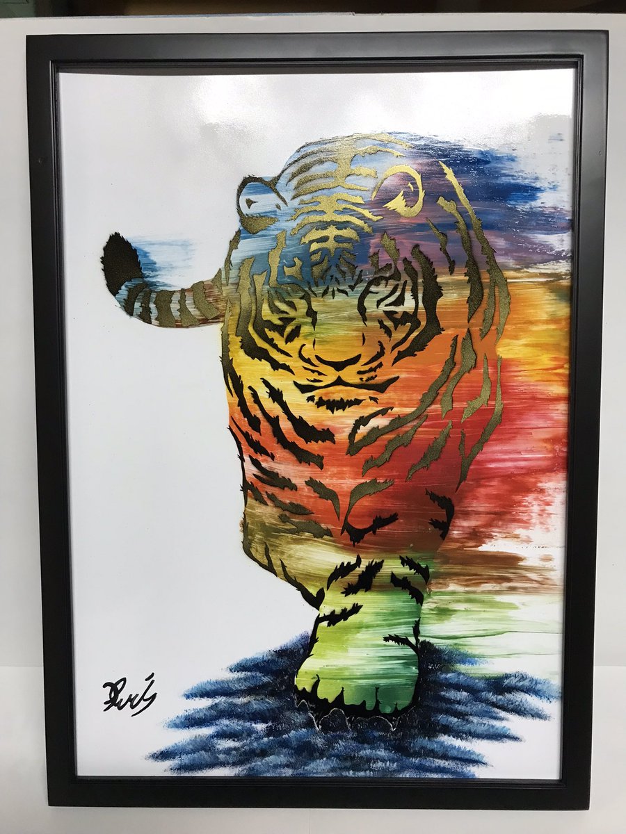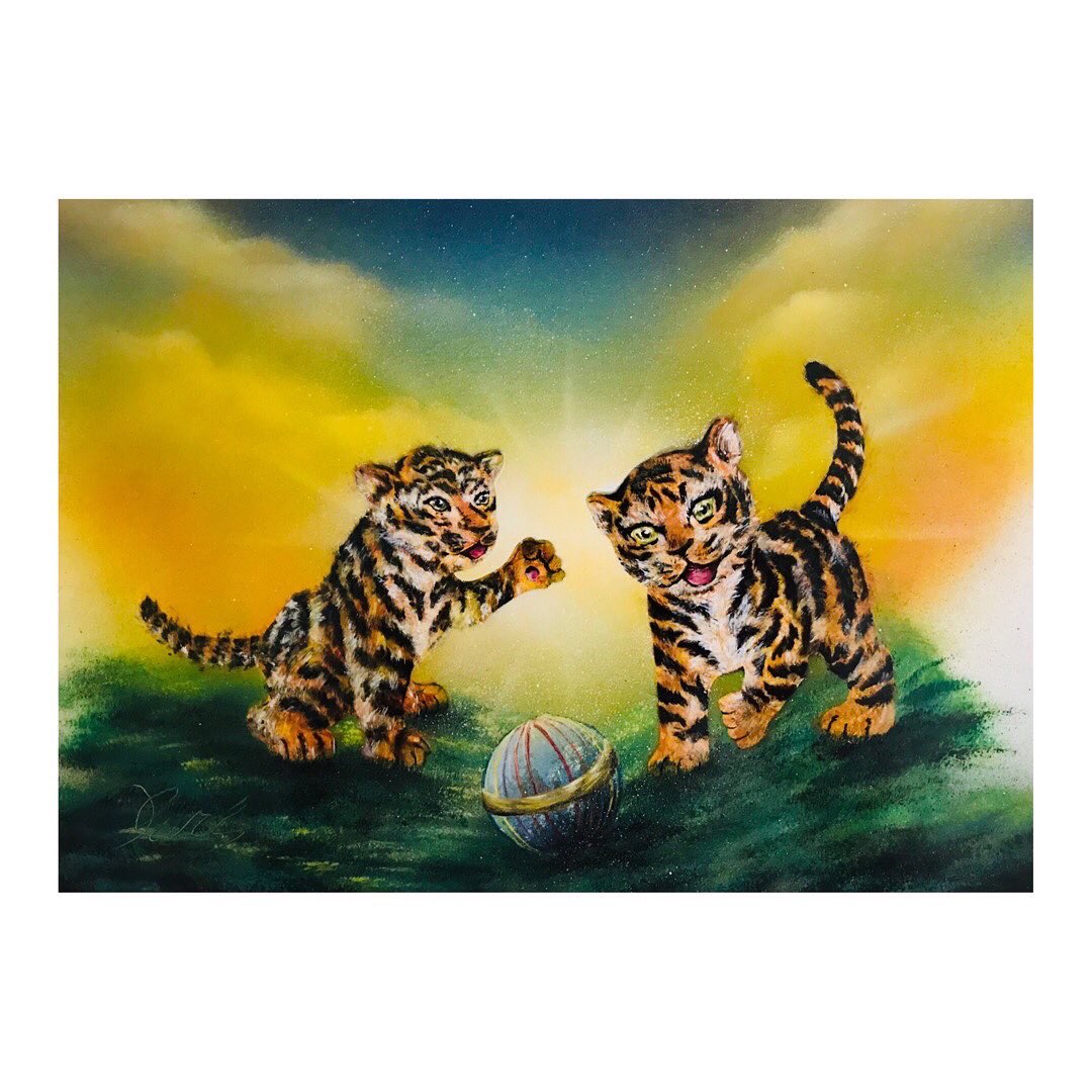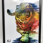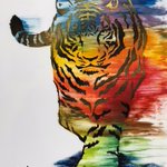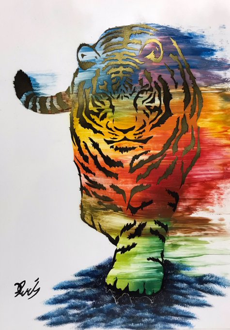 沼津御用邸公園の公募展 テーマ「干支 寅」 2作目タイトル 「五色虎」 紙の白を活かしたかったので、シンプルな作品を描きました。 毛並みを描くか迷ったけど、もう一つの作品との差別化した感じ!!🤗 #スプレーアート #日本スプレーアート振興会 #絵描きさんと繋がりたい #干支 #虎 #シンプル
