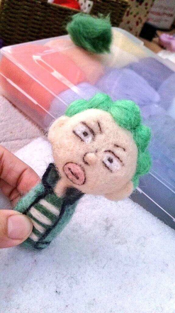 新作っつーことで チクチクしてたら 頭の羊毛フェルトが百均なのでスグ無くなった 買いにいかねばー #羊毛フェルト #斉木楠雄