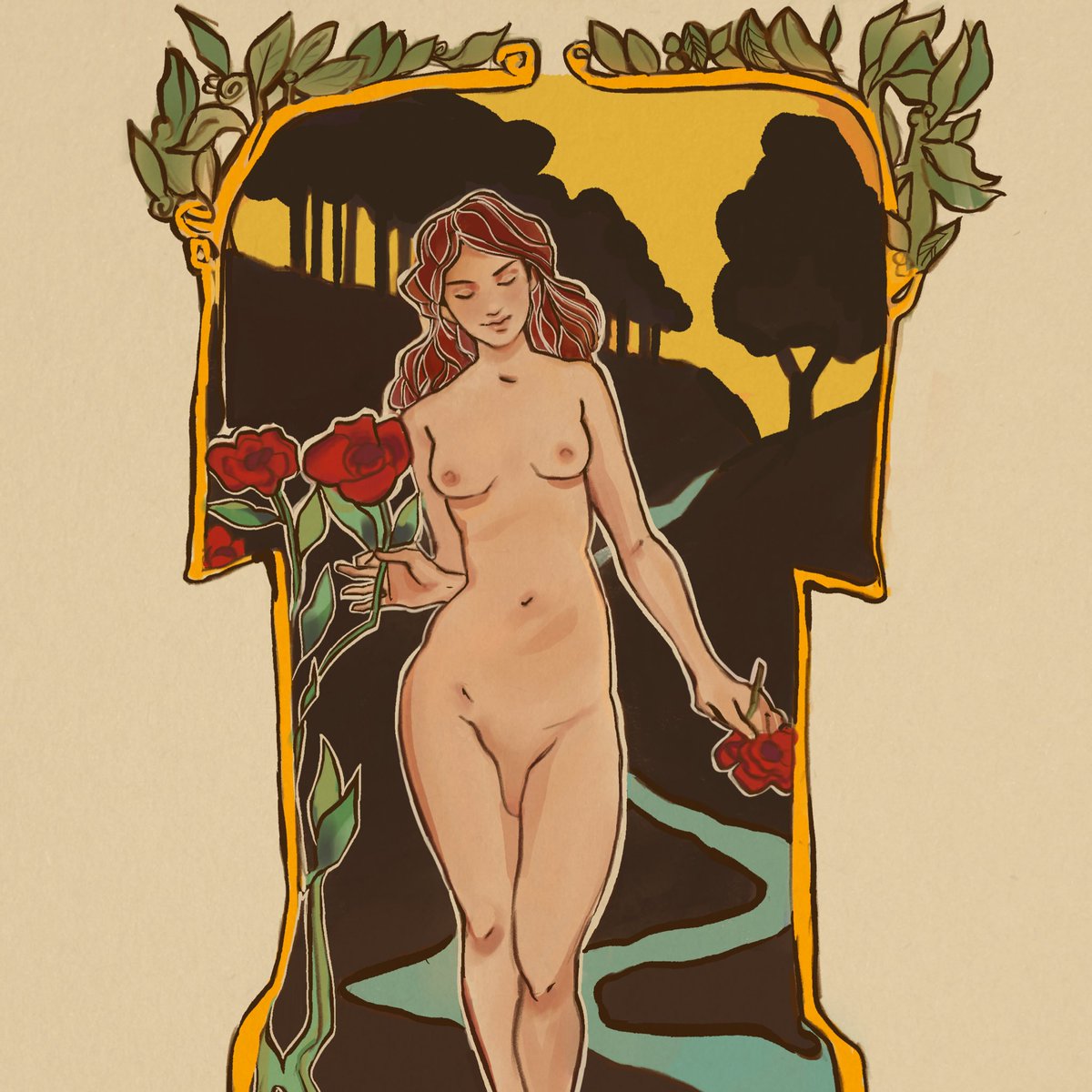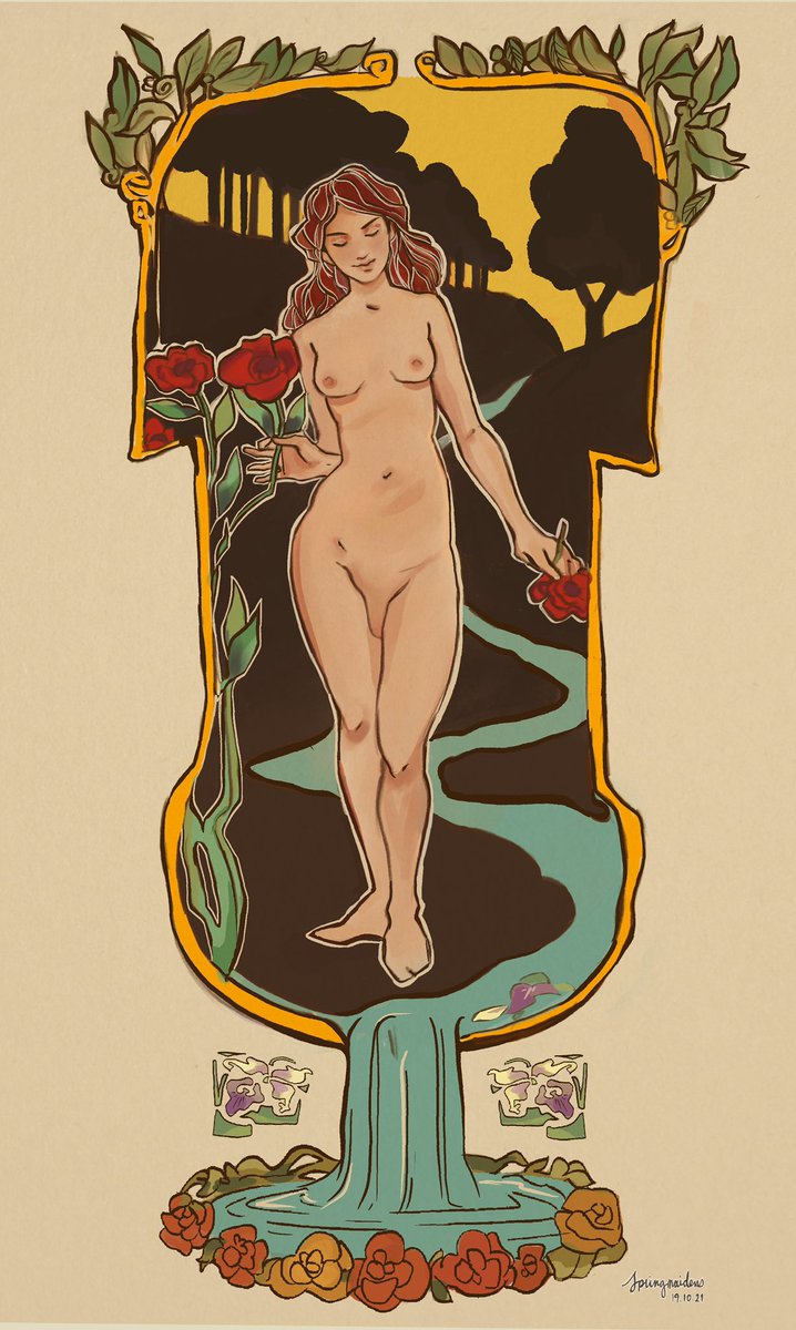 the sparkle of her laughter would give me greater joy than all the bronze-clad heroes ☀️ [#illustration #ocart #wlwart #artnoveau]