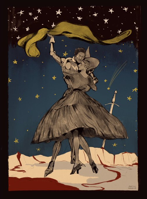 A Dream 🌙 ✨— a knight and her witch. happy all hallows’ eve! [#illustration #ocart #artistsontwitter #halloween ]