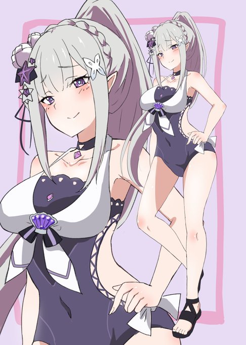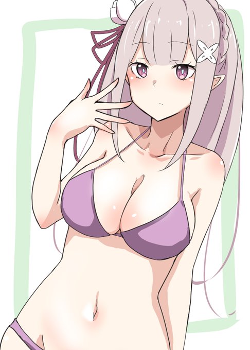 #今年も残りわずかなので今年一番伸びた絵を貼る 水着エミリアたん(ง ˙ω˙)ว