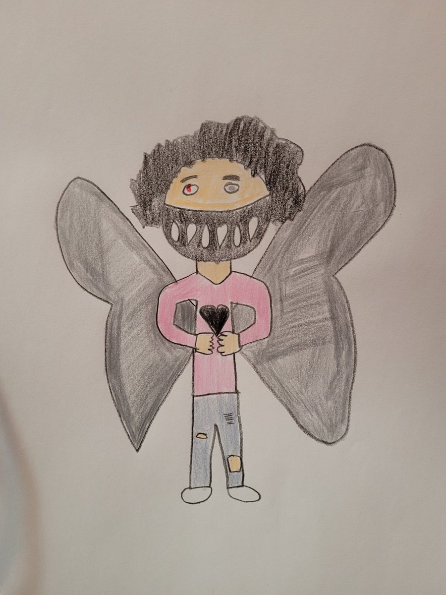 Not linked to anything, just Angel Corpse with silver wings offering his love in the form of the signature black heart. #corpsefanart #corpsehusbandfanart #corpsetwt