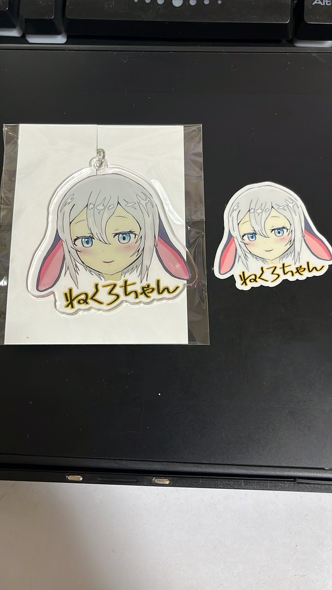 ちょっと前に描いたねくろちゃんがアクキーとステッカーになりました。 世界に1つ✨ #山黒音玄 #あおぎり高校美術部