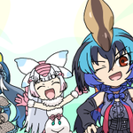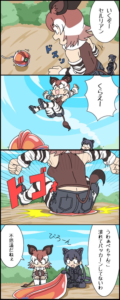 お題「お尻ぐらいの大きさのセルリアンをヒップドロップで紙みたいにペラペラに潰すオカピ(後ろからのアングルで)」 まだサイズが変わるようなミラクルは出てきてない