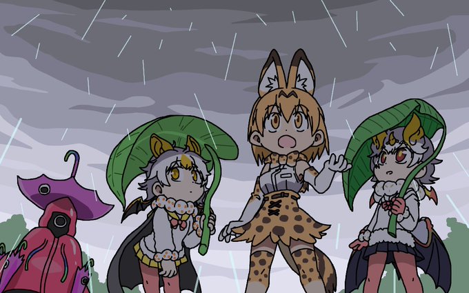 85 226 お題「梅雨を感じるサーバルちゃん」 季節物だったので明ける前に描いたけど梅雨というかただの雨 23/06/25 13:54