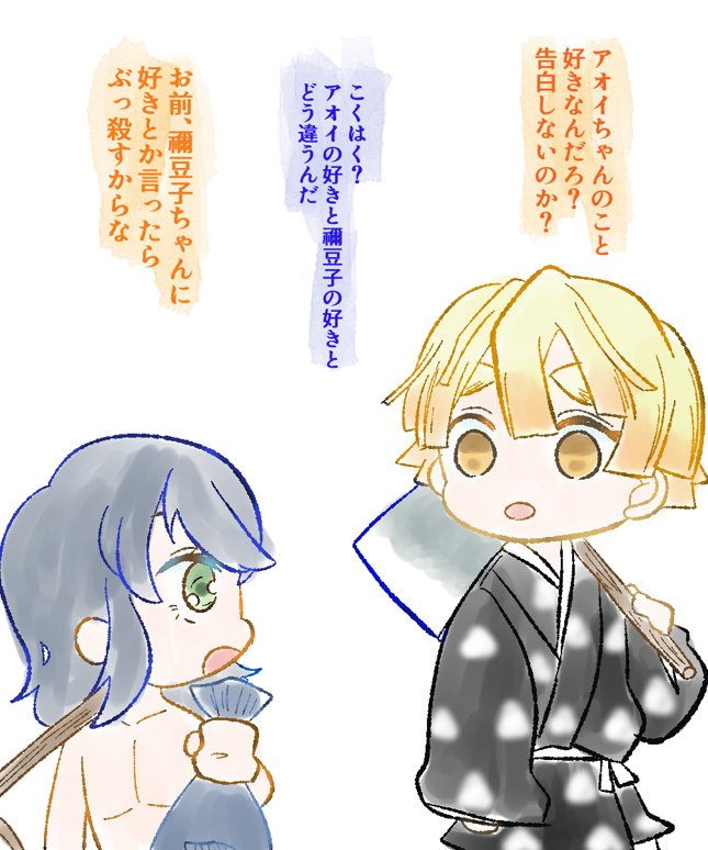 # リプきたキャラの恋を自覚した瞬間の表情を描く #伊アオ アオイちゃんの事好きなんだけど、恋愛感情としての好きを解ってなくて、善に突っ込まれてたんじろに教えてもらってやっと気付きそう