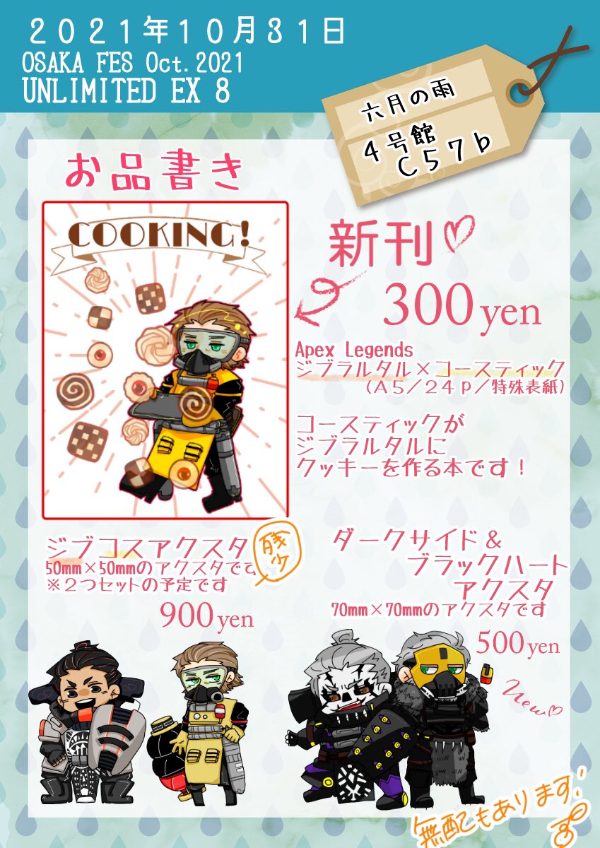 【イベント参加のお知らせ】 10/31インテックス大阪のアンリミテッドに参加します! お品書きとおまけのイラストです スぺ【C57b】「六月の雨」 新刊とアクスタもってきます!無配もあるよ!よろしくです! 【新刊】COOKING!ジブ×コス #pixiv pixiv.net/artworks/93534…