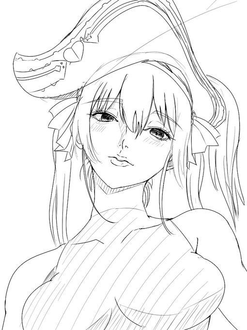 マリン船長のラフ✎ ルーナ姫の時と同様に厚塗りで描いていきます #マリンのお宝