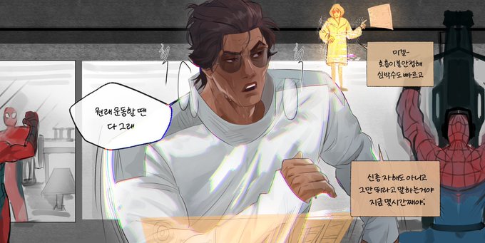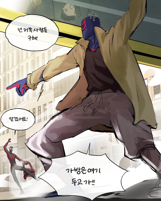 그릴려던건 이게 아니었는데.. 어쨋든 마일즈 오기전까지+캐논이벤트 전까지 제프 지켜주는 미겔이 보고싶었다.. #AcrossTheSpiderVerse
