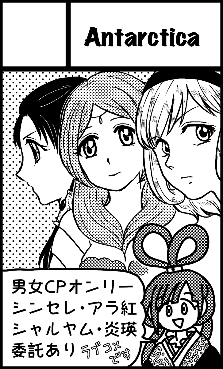 2023年2月26日(日) 時間12:00~16:00 千夜一夜26(TRCオンリーライブ2023 Feb.26) 会場 東京流通センター(TRC) 第2展示場 Fホール E08 で参加します。 「Antarctica」マギ ・男女CP本新刊(サンプルURL) ・シンセレ本新刊(委託) ・炎瑛本新刊(委託) pixiv.net/artworks/10475…