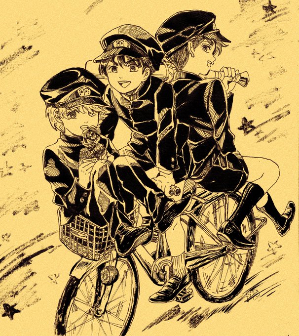 自分のイメージで夕闇通り三人描いてみた😌サンゴはサカイとの会話で歯の矯正してると知ってメタルブラケット描かずにはいられなかった(性癖)
