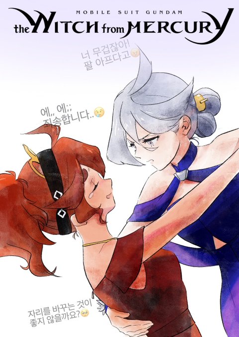 #수성의마녀#水星の魔女 드레스 나왔길래 전형적인 구석 출신 슬레타가 춤 못춰서 연습하는거 나올줄 알았는데 투자 간담회만 나와서 놀랐다 하지만 요즘 파티나 연회 묘사로는 이게 더 정확하겠지 🤔 아무튼 슬레미오슬레로 춤 연습하는거 그려봄 나중에 춤 포지션은 바꿨다한다 그런 느낌 😶🌫️