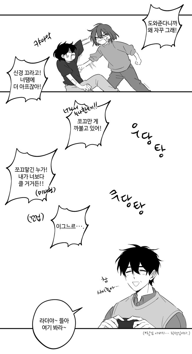 583 2535 미수반🐳🦈 어렸을 때 별거 아닌 걸로 싸우는 거 보고 싶어서 그린 자급자족 만화 (앞뒤 내용 없음 주의) 21/11/16 21:44