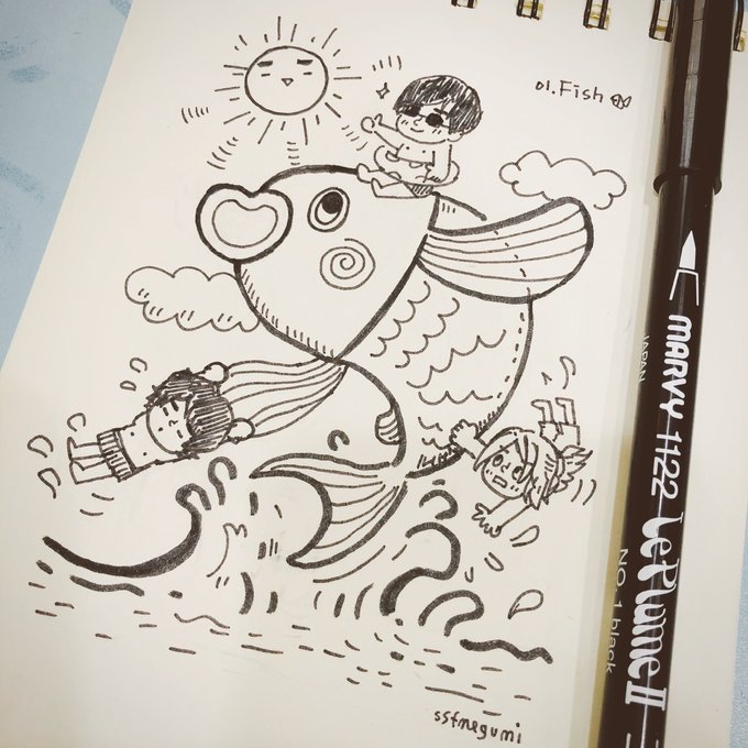 #inktober2020 10/01-Fish🐟 パルマ海上樂園😂