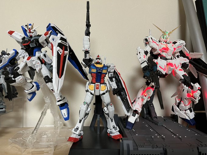 #今年作ったプラモ晒そうぜ #ガンダム #ガンプラ 他に作ったけど記憶に残ったのはこの三体かな。オリジナル版 ガンダムは本当に神キットだった((¯ω¯)