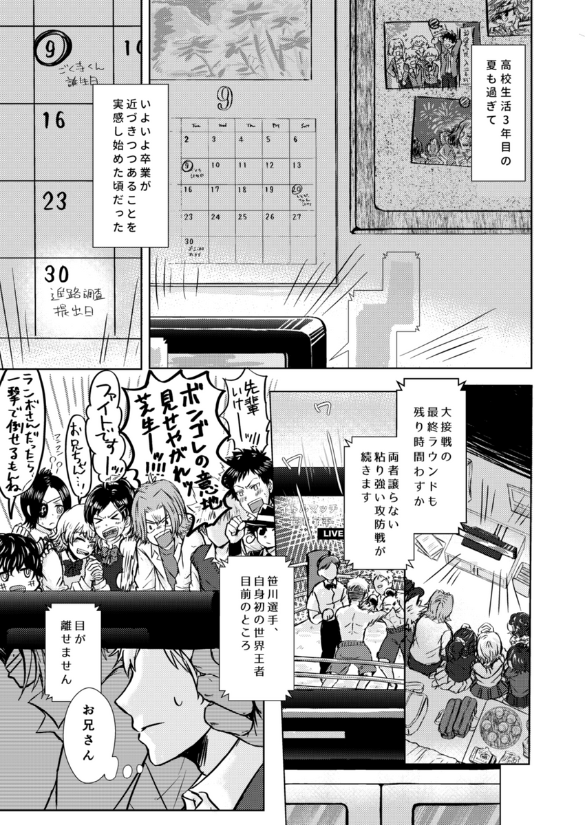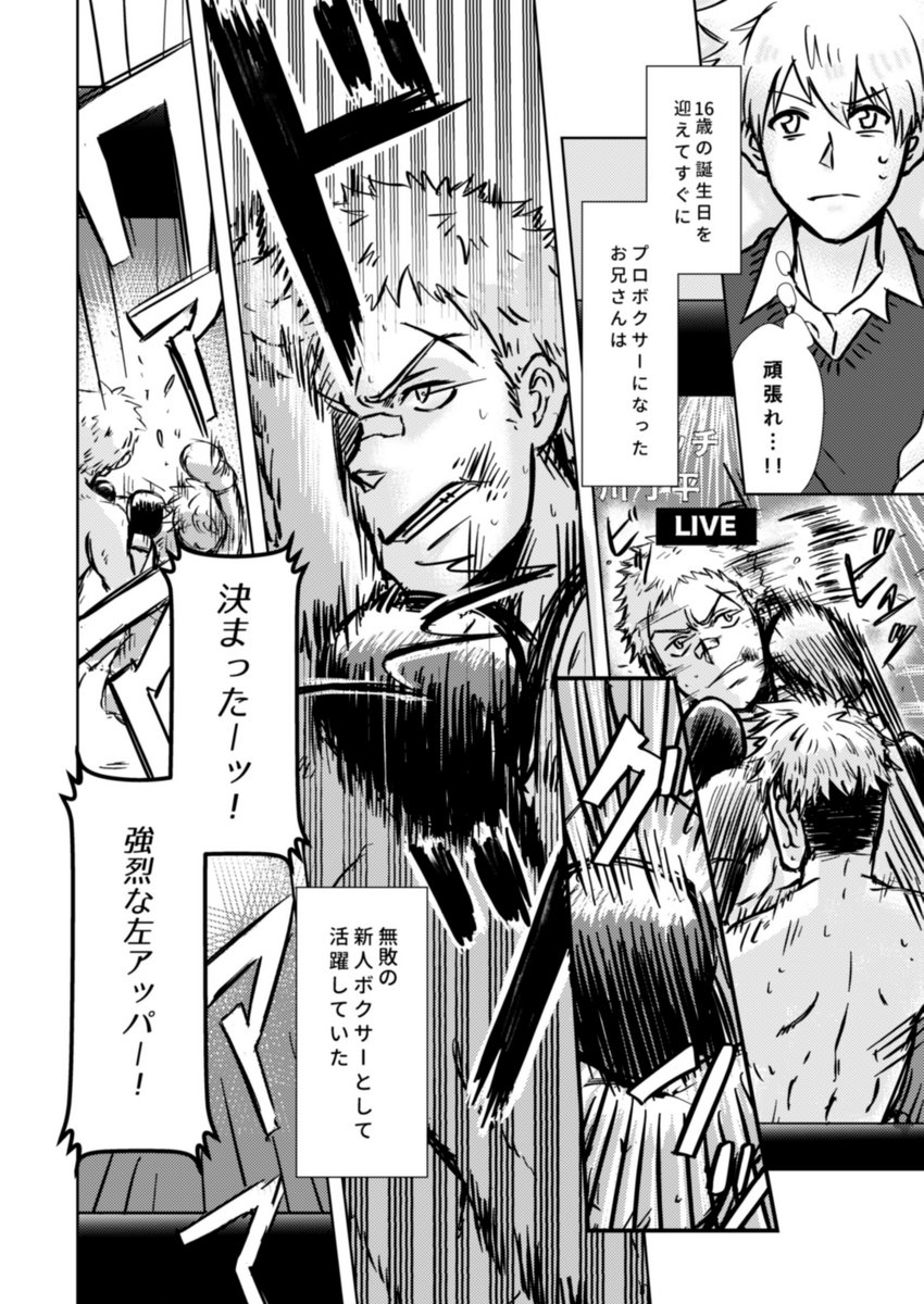 3/21復活祭改14にて発行する兄とつなの漫画。 発行物はこちらの話を全文(28p)再録+描き下ろし予定だった漫画2(+1)pをペーパーでの形でお付けして頒布します。(以前の告知から仕様変更しました…!) ------ プロをやめたお兄さんのはなし(高校生設定) (1/7)