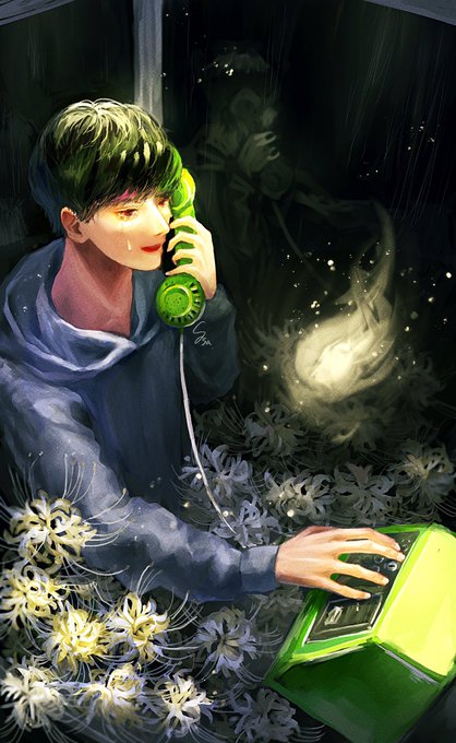 #ファーウェイ夏のイラコン2021 また会う日を楽しみに 白い彼岸花の花言葉をテーマに描きました。 もう一度、あの人の声が聞けたら、、そんな非日常を叶えてくれる電話ボックスがあっても良いなあ、と