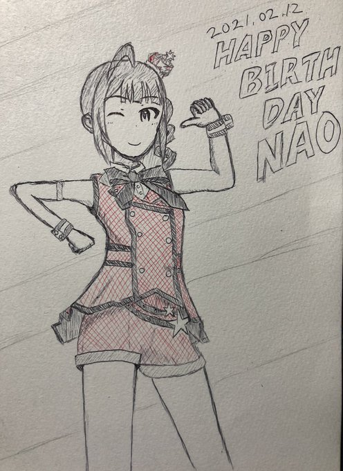 遅れたけど奈緒ちゃんお誕生日おめでとう🎉 奈緒ちゃんのプロローグ・ルージュ衣装、かわいさとカッコよさとセクシーが全部詰まってて好き ボールペン1発描きで細かい所省略したけど勘弁してや〜 #横山奈緒生誕祭2021