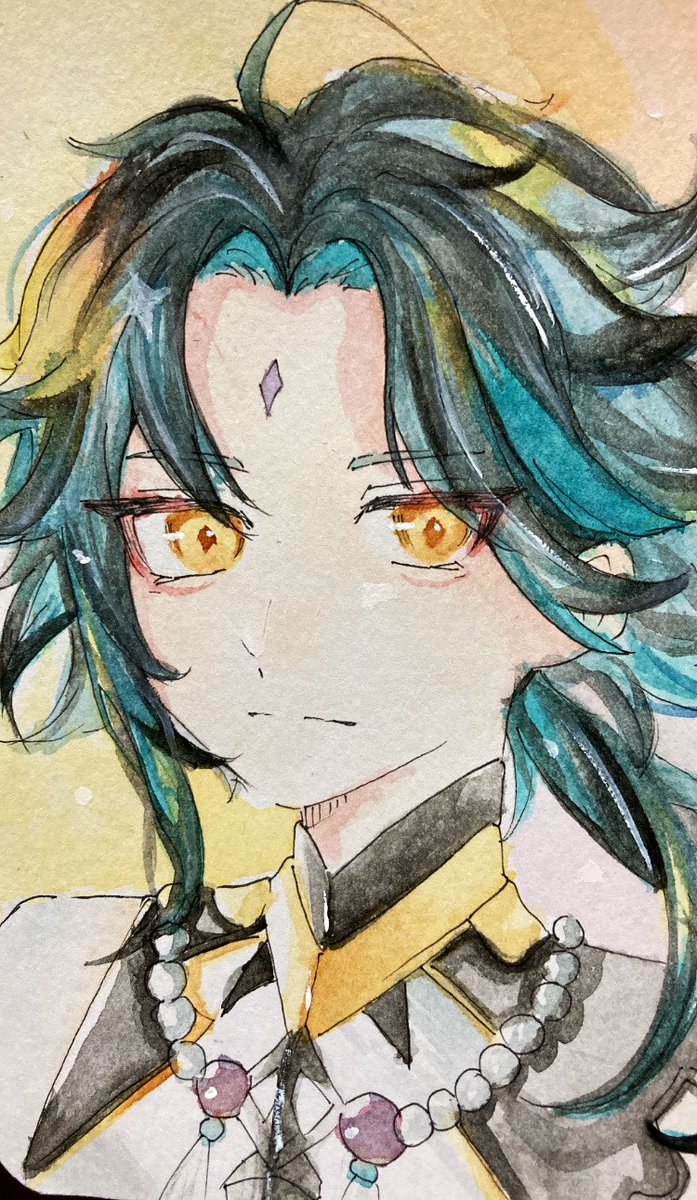 2 14 #原神 #原神イラスト #魈 #水彩画 22/04/03 22:44