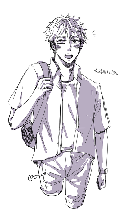 学生ハジらくがき 片想い中の人見つけた、みたいな図……