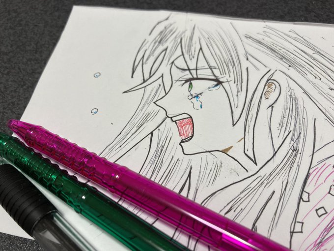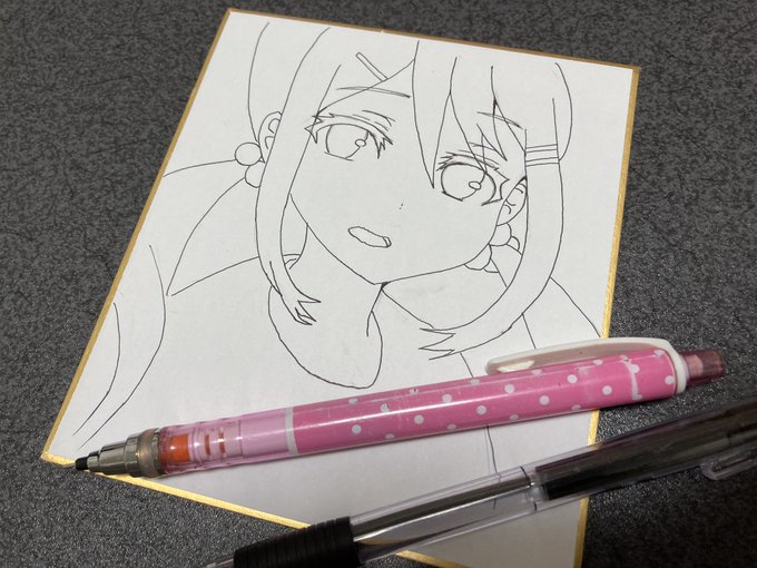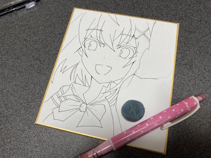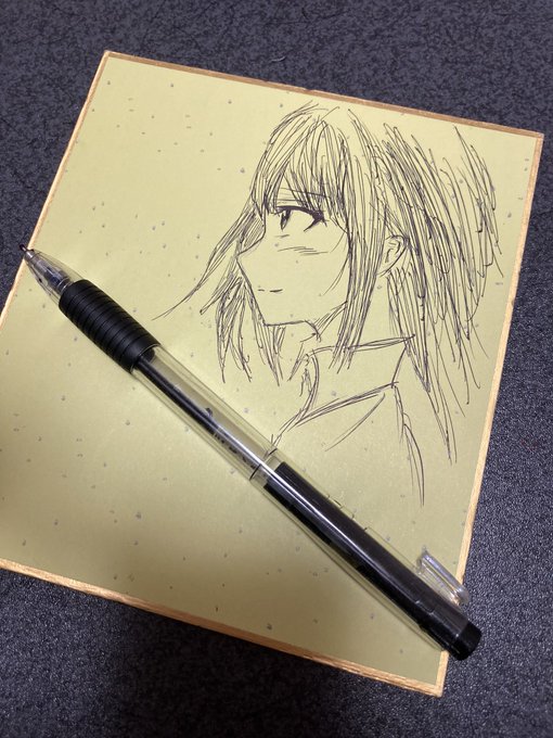 何で色紙の裏に落書きしてるかって 表面は模写せずオリジナルの絵を描いたら大失敗したからだ😏 考えて描くより適当に描いた方がそれっぽくなるのかも… #絵描きさんと繋がりたい #イラスト