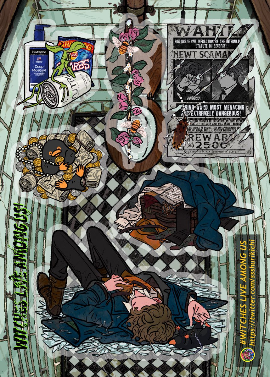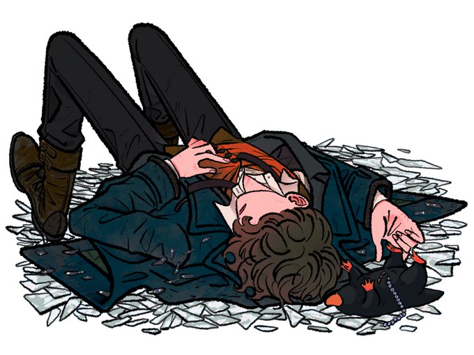 好きなシーンをいっぱい描けて楽しかった!ニュートは新聞のティナに話しかけてると思う。地面を舐めてるときより羽を吸ってるときの方がヤバいって顔してるジェイコブが好き。私はファンタビシリーズで感動の再開から狂気の食卓シーンが1番好きです。見てネ!!