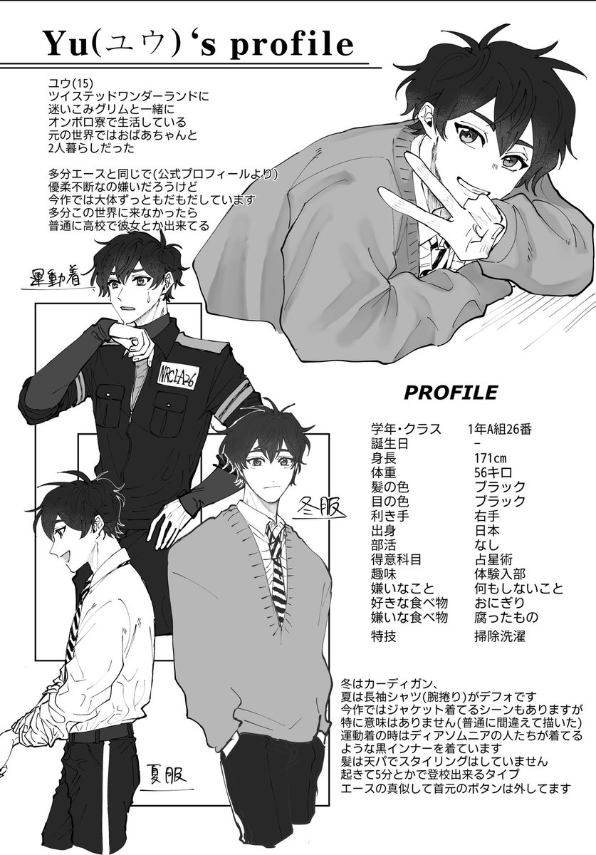 私も本描くにあたって監くんのプロフィール描いたんですけど皆の監督生の身長と体重も教えて…プロカ頼む……