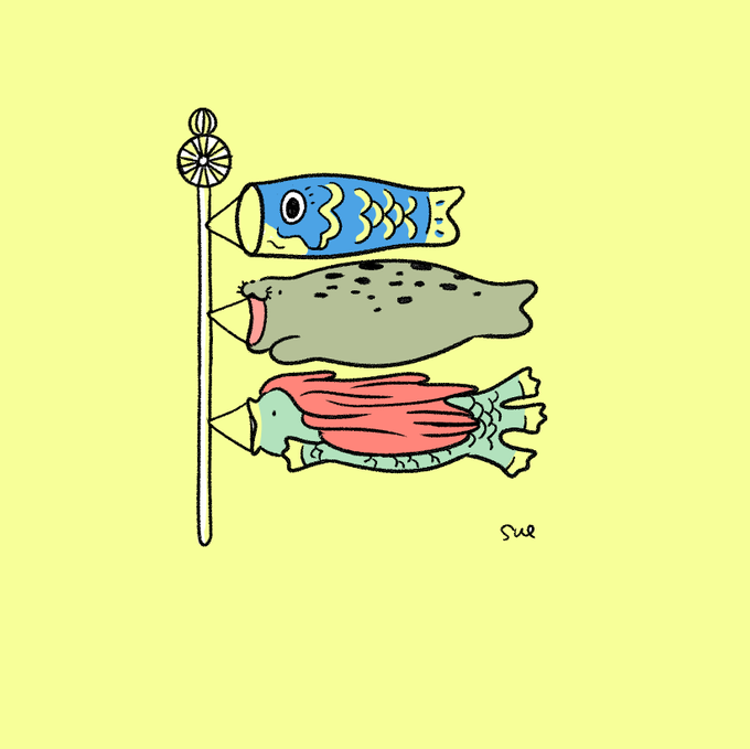おやすみなさい。こいのぼりとあざらしのぼりとアマビエのぼりです。 #アザラシ #あざらし #seal #こいのぼり #鯉のぼり #こどもの日 #アマビエ
