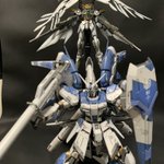 RG Hi-νガンダム作りました! 成形色よりほんの少しトーンダウンさせた全塗装+メタルチップを使用してみました! #ガンプラの画像貼るとRTされると聞いて #ガンプラ