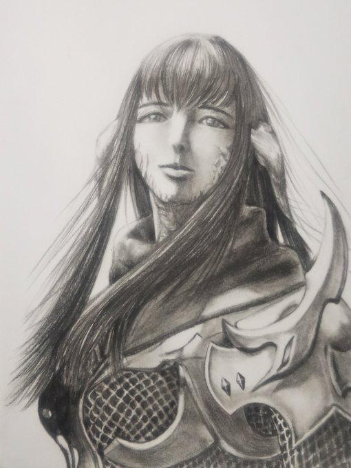 #今日の1枚。 #ランジート (Ran'jit) 最後まで光の巫女の行く末を案じた将軍。 #FF14 #FF14イラスト #イラスト #鉛筆画 #pencilart #illustration #pencildrawing #Ranjit