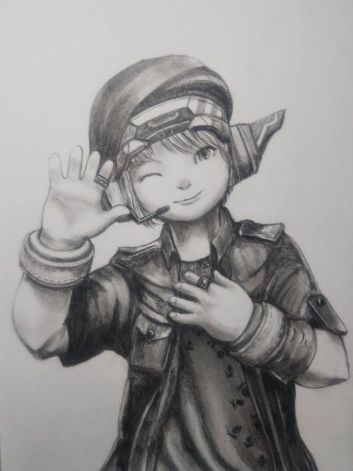 #過去の1枚。 #アルファ ちゃん、カワイイヨ。 (新作はお昼過ぎにあげる予定です) #FF14 #FF14イラスト #イラスト #鉛筆画 #pencilart #illustration #pencildrawing