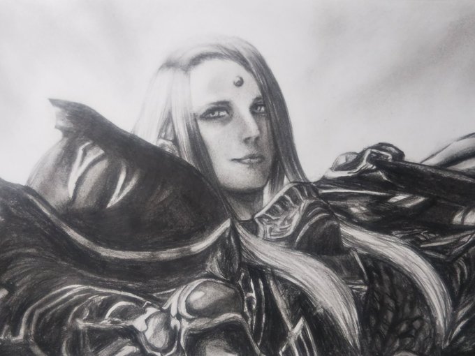 #過去の1枚。 エミュちゃんが、#暗黒騎士 で固定で参加している『#絶竜詩戦争』。 少しずつですが着実に進んでいってるみたいですね。 良い固定PTで良かった! ガンバレー!(`・д・´) #FF14 #FF14イラスト #イラスト #鉛筆画 #pencilart #illustration #pencildrawing #FFxiv #darkknight