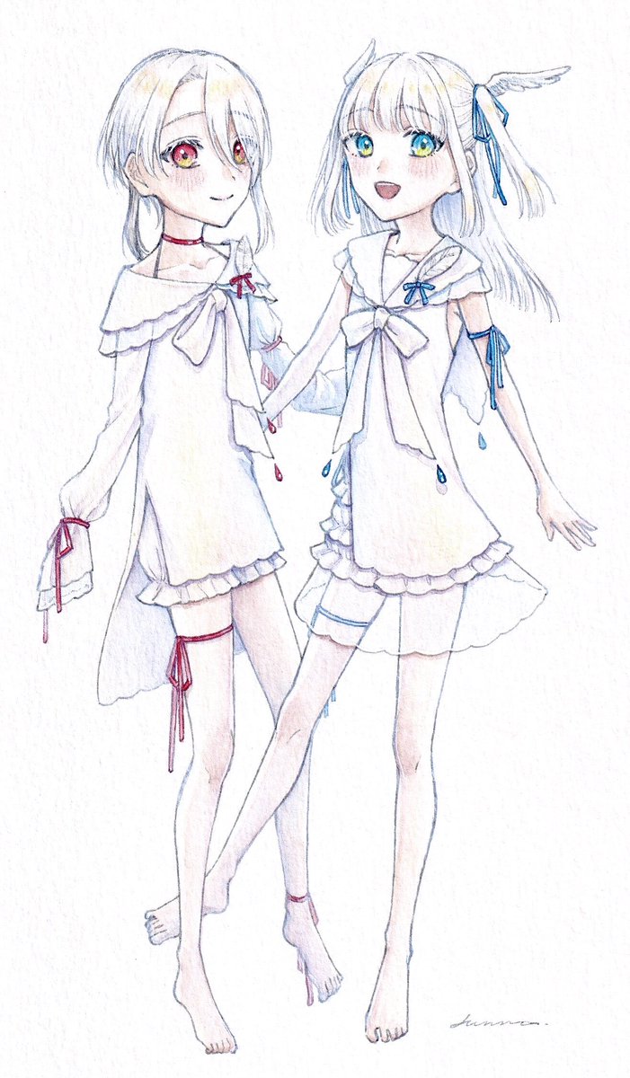タグ企画 #自創作女子イラストフェス01 に参加します✨ 双子ちゃん❤️💙 衣装考えるのも好きです❣️