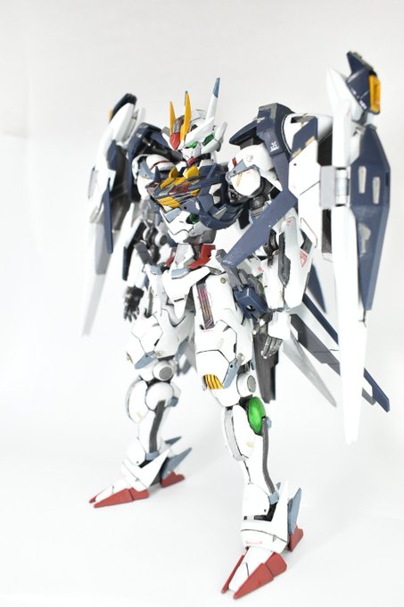 完成! GNエアリアルライザー エアリアルと00ライザーとのミキシング&全身ディティールup。 塗装はall筆塗り 超汚ぇw 12月から改造初めて約4ヶ月かかりましたw #ガンプラ #エアリアル #水星の魔女 #ダブルオー #ガンプラの画像貼るとRTされると聞いて #ガンプラ好きとつながりたい 写真続きます。