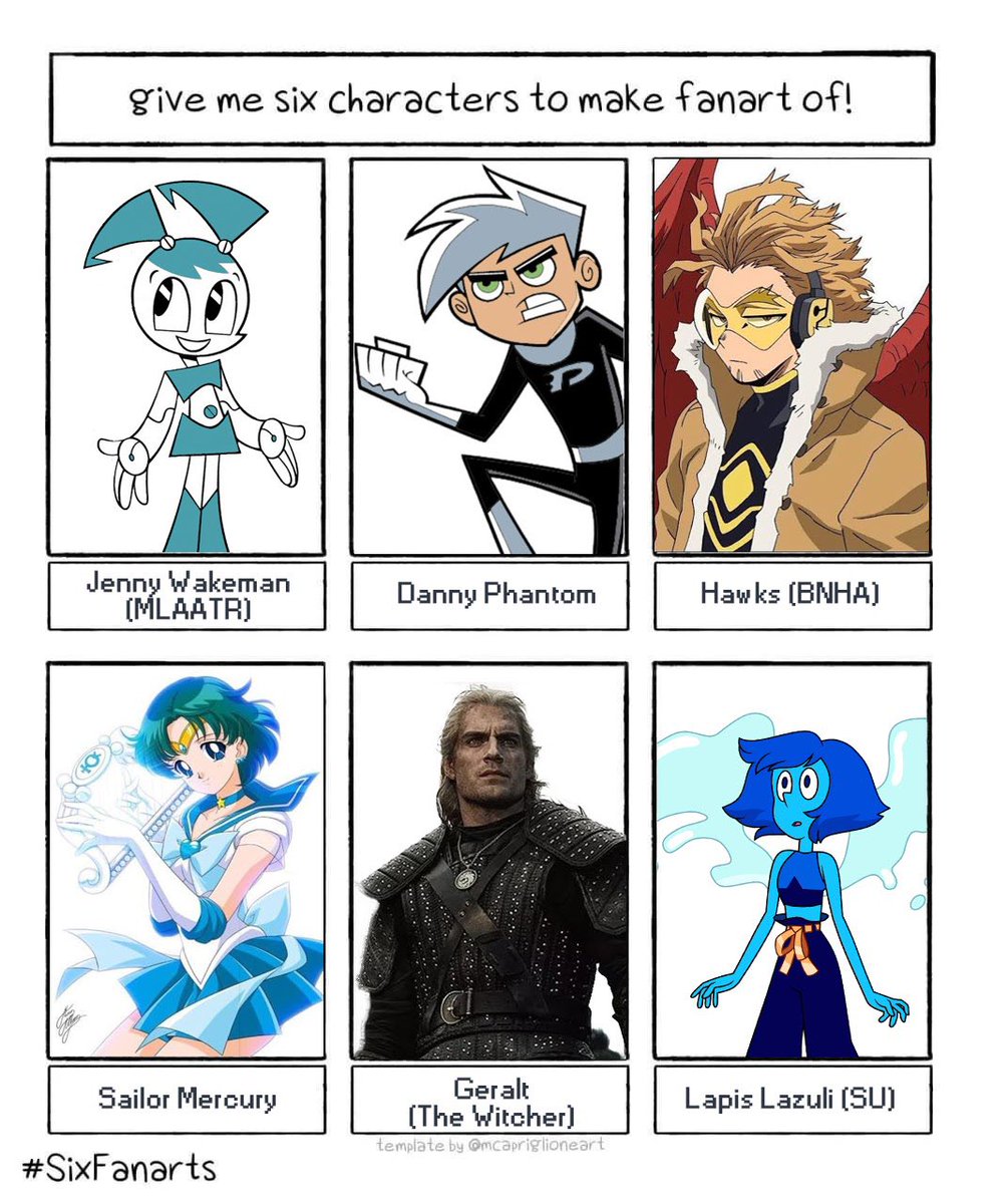 Thank you for all your suggestions! I was given 53 different characters to pick from (including my OWN characters) so it was really hard to narrow it down but I think these are gonna be so much fun! Can’t wait to get started! 🔥🙏🏼 #SixFanarts