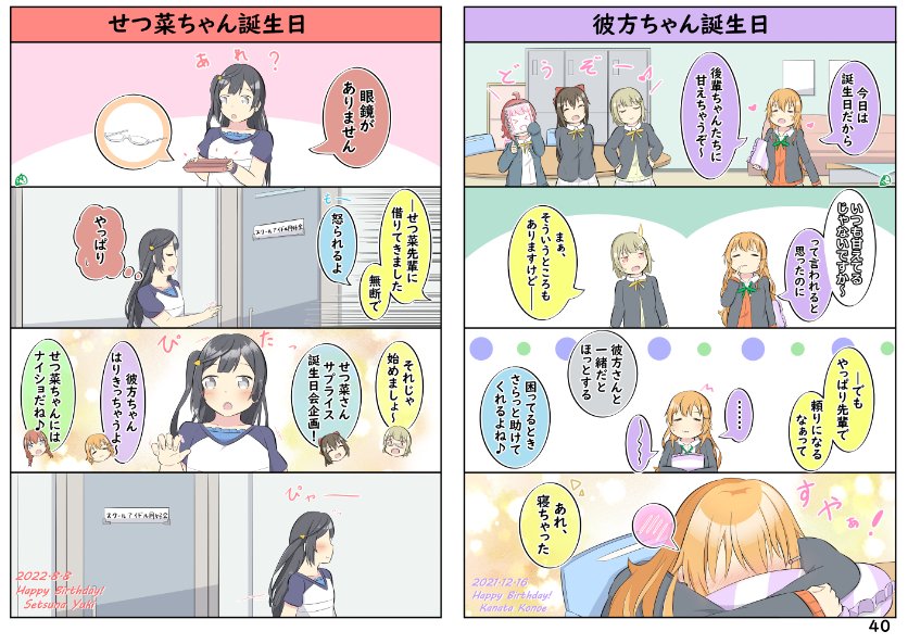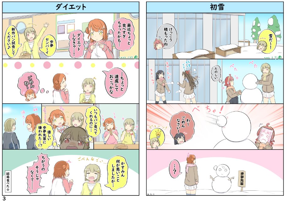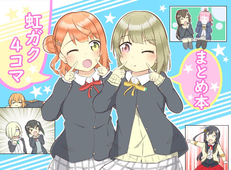 僕ラブ36新刊の表紙とサンプルです! 虹ヶ咲4コマ漫画のまとめ本です🙏 ツイッターにアップしてきたものと今回用に描いたもの合わせて約70本収録してます!🌈🌈