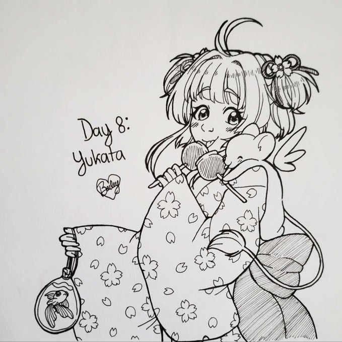 Day 8: Yukata 👘🎇 Out of all the styles of yukata in anime I've seen, Sakura's yukata from Cardcaptor Sakura has been the most memorable to me! #cutegirltober2022 #cardcaptorsakura #inktober #fanart #sakurakinamoto #keroberos #anime #yukata #traditionalart #inkart