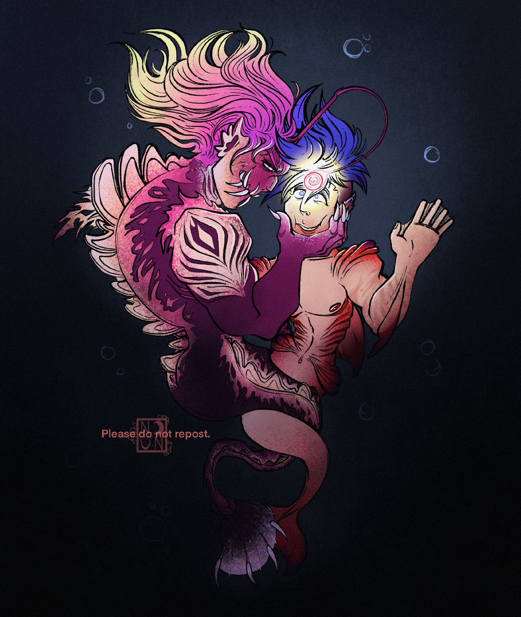 Whew! Last minute #mermay2022 ! I’ve had a design for anglerfish Kray swimming around in my head all month and I’m glad I finally got his design down. 🧜♂️ #kraygalo #PROMARE