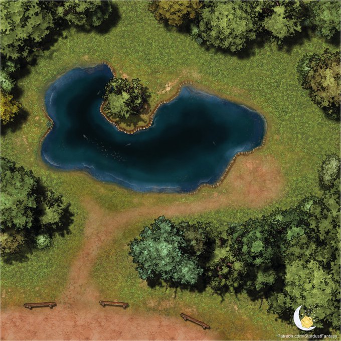 Midweek Map Time! Suspicious Pond - Adventurers may notice something doesn't feel quite right about the waters. Does something lurk within its depths? Download different high quality versions on our Patreon for just £1! #inkarnate #dndmaps #cartography #dnd #dnd5e #dndart