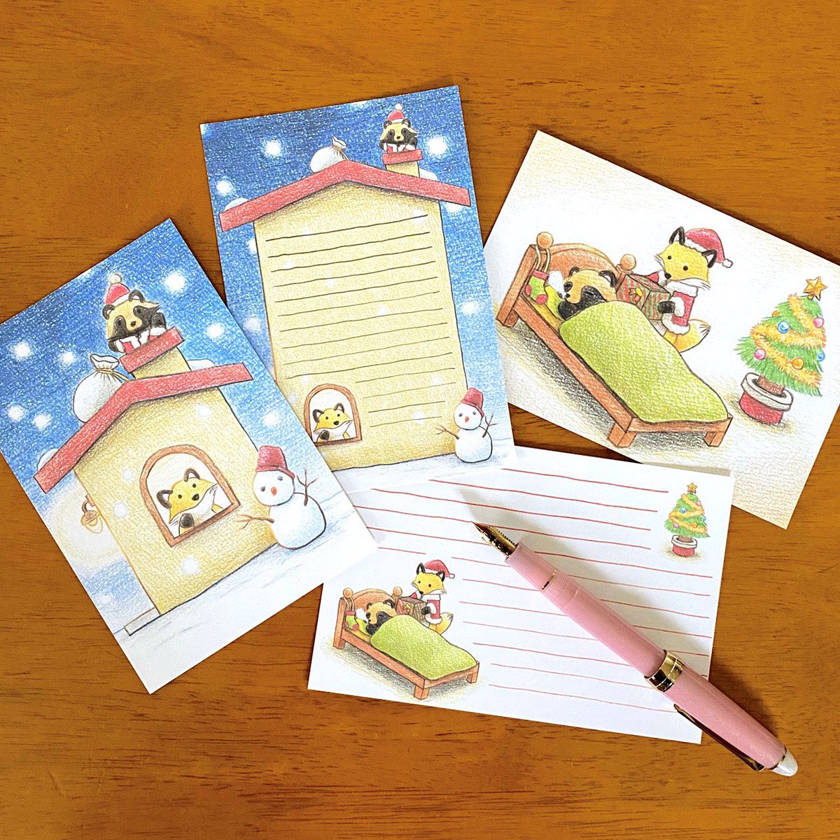 ☆作品紹介☆タヌキとキツネのクリスマスポストカード おっちょこちょいなタヌキとしっかり者のキツネのクリスマス風景を描きました🎄 ちょっとしたメッセージを送るのにいかがですか? イラスト→minne.com/items/25391929 行線あり→minne.com/items/25392010 #ハンドメイド #タヌキ #キツネ #イラスト
