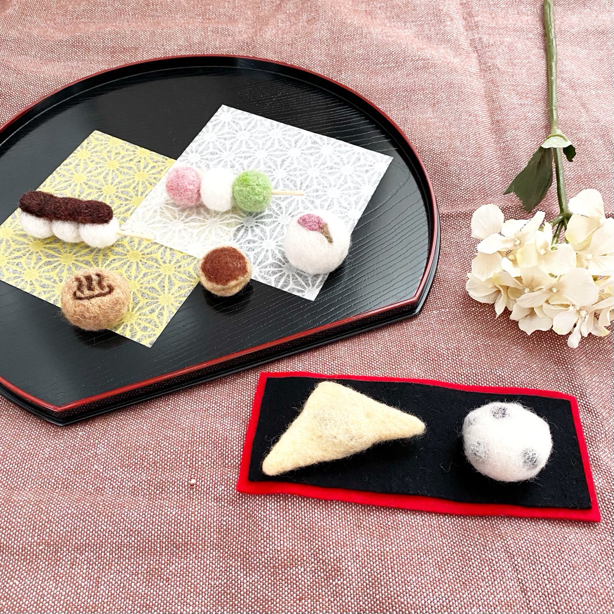 ☆作品紹介☆ふわふわ和菓子 練り切り 可愛くておしゃれな練り切りがふわふわな置物になりました🌸 たくさん並べると和菓子らしさアップ👍 2個以上購入でフェルトマットが付いてきます minne minne.com/items/13780553 Creema creema.jp/item/11134237/… #ハンドメイド #羊毛フェルト #和菓子 #練り切り