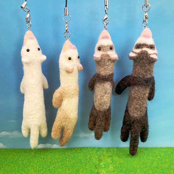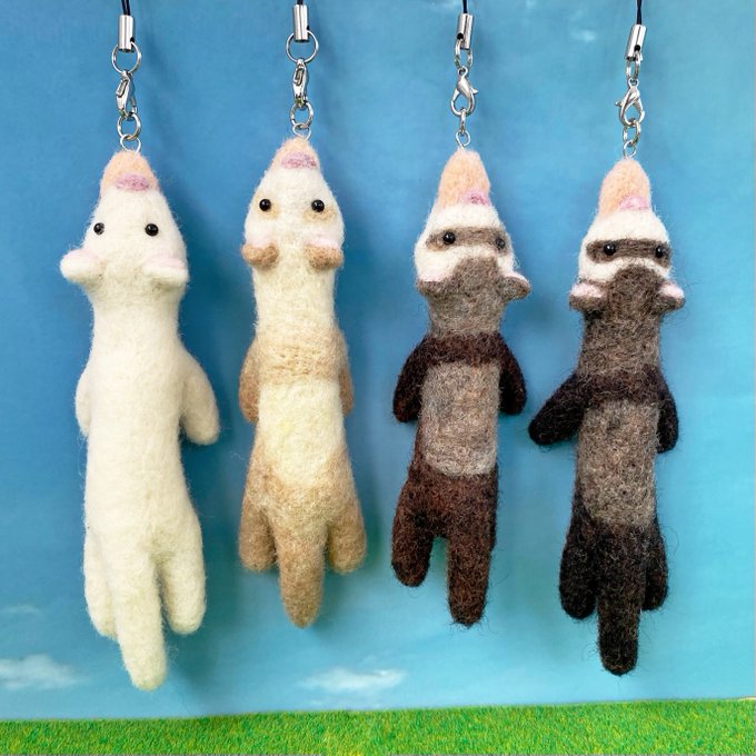 一部品切れになっていたぷらん フェレットのストラップ・キーホルダーを補充しました✨ スマホなどの小物に付けやすい小ぶりなサイズで、ぷらぷらと揺れる姿がユニークです☺️ minne minne.com/items/24800728 Creema creema.jp/item/11128695/… #ハンドメイド #羊毛フェルト #フェレット