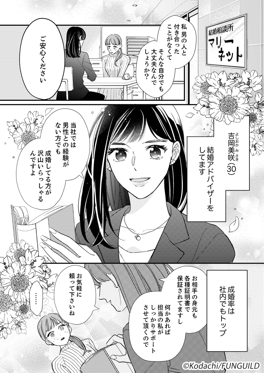 【告知】 女性漫画レーベルチェリッシュ(@cherish_fg)さんにて新連載が始まりました!本日から1~5話、各電子書店さんで配信開始です。 💛『恋愛検証~相性0%男と結婚はアリ?』 真逆の結婚観を持つ同僚同士のお話(試し読み)☛ #漫画が読めるハッシュタグ (1/4)