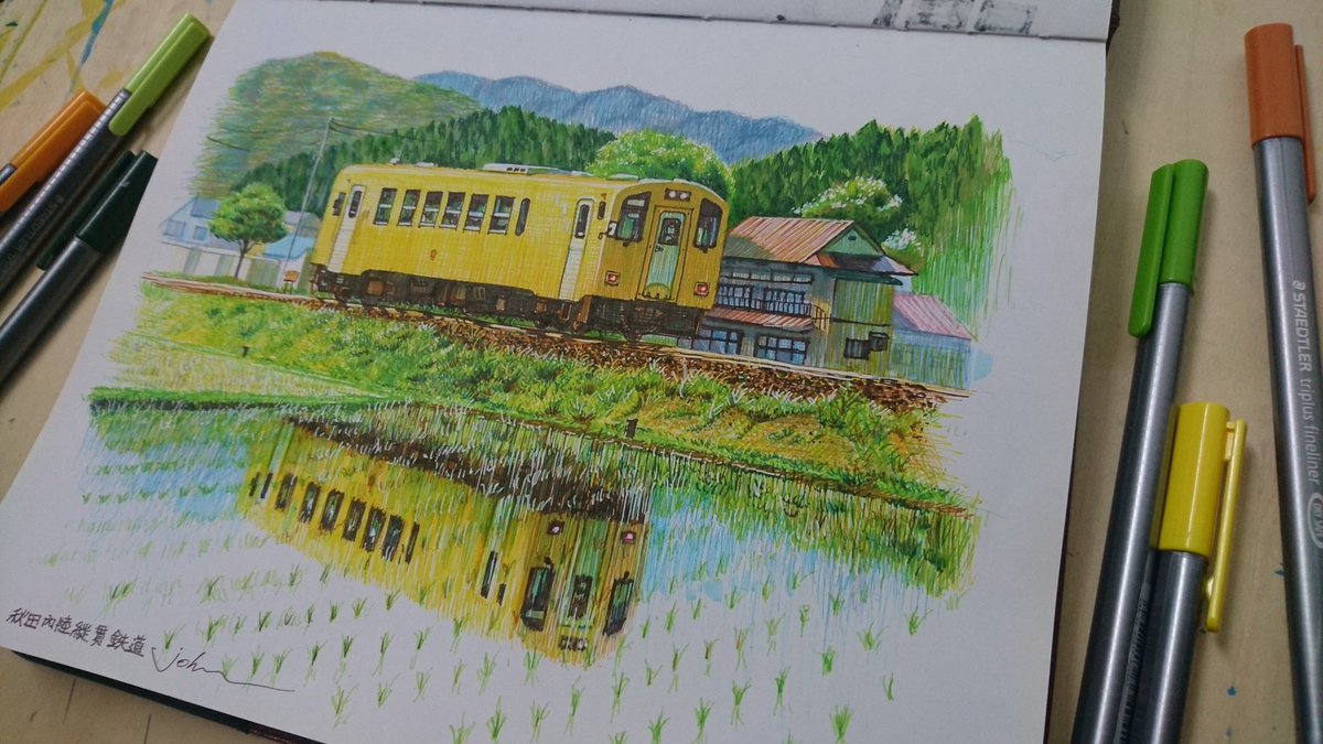 秋田内陸縦貫鉄道 #スケッチ #水彩 #水彩が好き #Watercolor #draft #doodle #水彩手帳スケッチ #絵日記 #水彩画 #万葉線 #富山 #高岡 #秋田 #秋田内陸縦貫鉄道