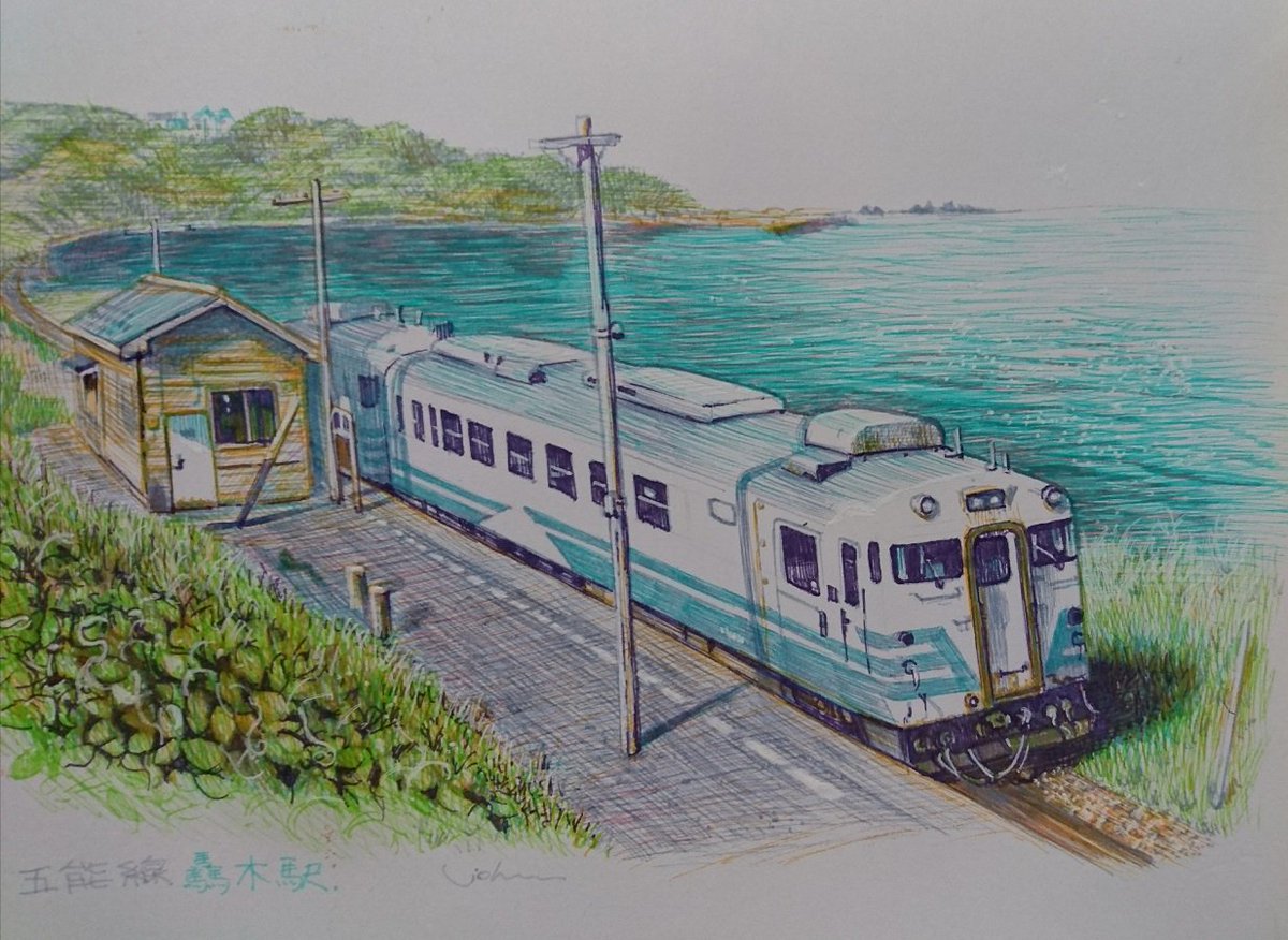 五能線驫木駅 #スケッチ #水彩 #水彩が好き #Watercolor #draft #doodle #水彩手帳スケッチ #絵日記 #水彩画 #五能線 #驫木駅 #とどろきえき