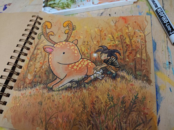けがした子シカ #スケッチ #水彩 #水彩が好き #水彩スケッチ #絵日記 #水彩画