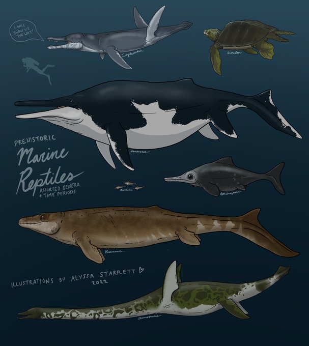 realized I've never really done Marine reptiles, here's a dump of my attempts from today. #paleoart #marinereptiles #mosasaurs