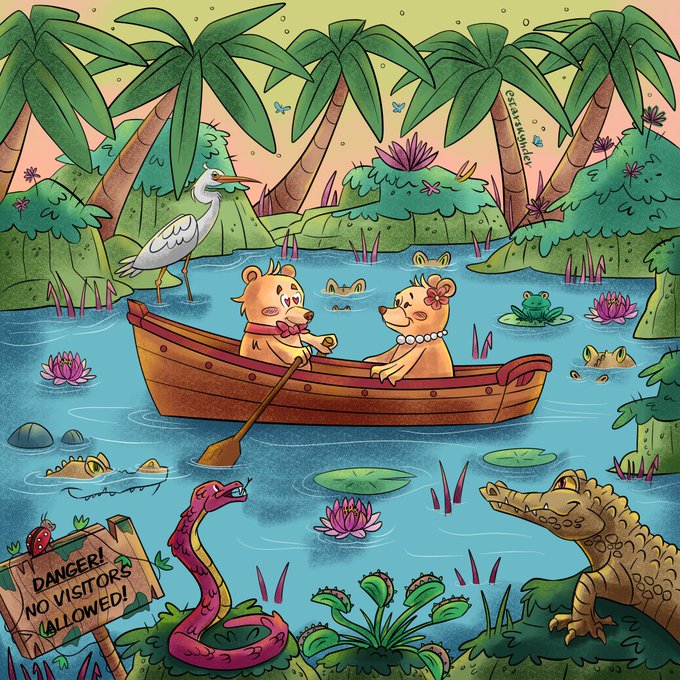 "Bear and Ursula were so blinded by love, they didn't realize they were taking the river forbidden path…" @AnimalAlphabets #AnimalAlphabets #art #clipstudiopaint #animals #illustration