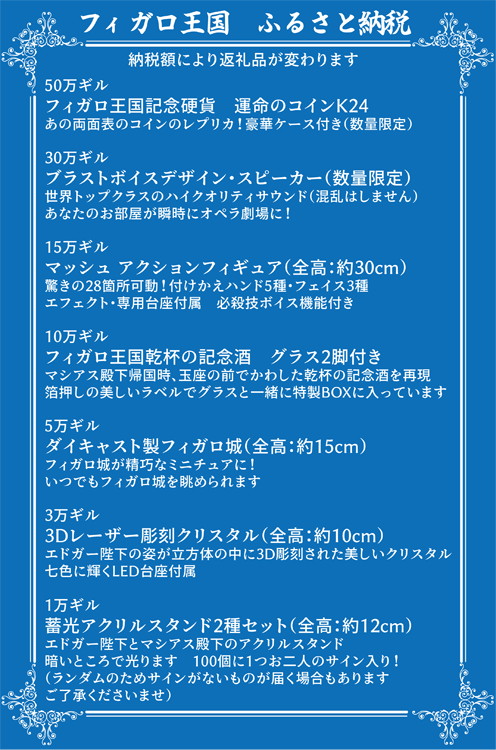 ドラクエのふるさと納税品があると知り、もし自分だったらフィガロ国に納税したいなと思いました ↓このタグの皆様もきっと同じ気持ち #フィガロ兄弟生誕祭2021 #bravo_figaro_2021 お布施するから公式FF6グッズ出してほしい。アイディアたくさんあるので企画部署にこれほしいテレパシー送りたいよ
